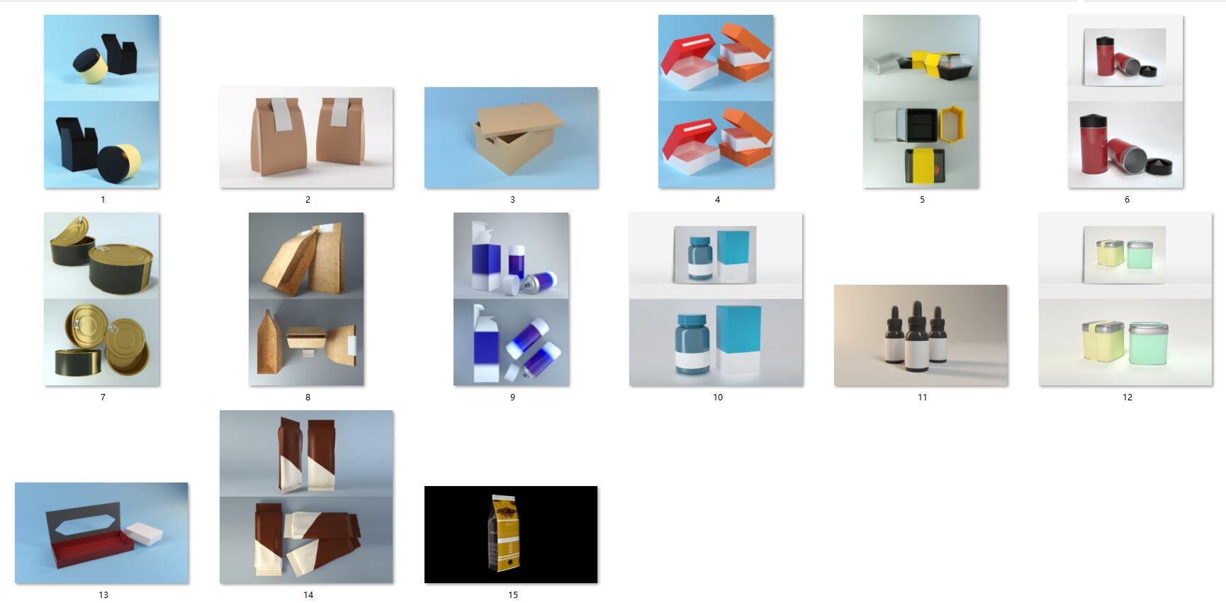 15个 食品包装 铝膜袋 纸袋 精油瓶c4d模型免费下载