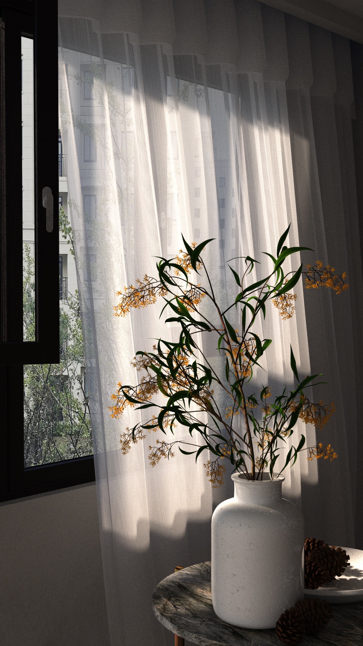 窗帘 花瓶 室内场景-octane渲染免费下载