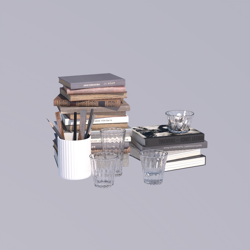 书架水杯书c4d模型免费下载